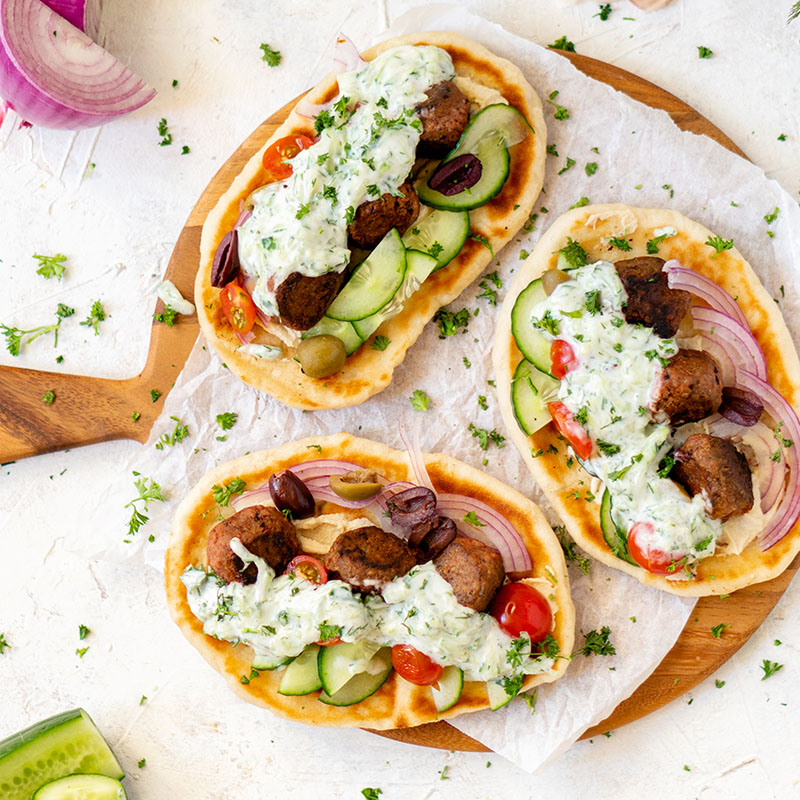 Bursting with Mediterranean flavours, these plant-based Beyond Meatball Gyros are perfect for a quick weeknight dinner. Made with juicy, plant-based meatballs nestled in warm, soft pita bread, topped with crisp veggies and a creamy, tangy sauce.